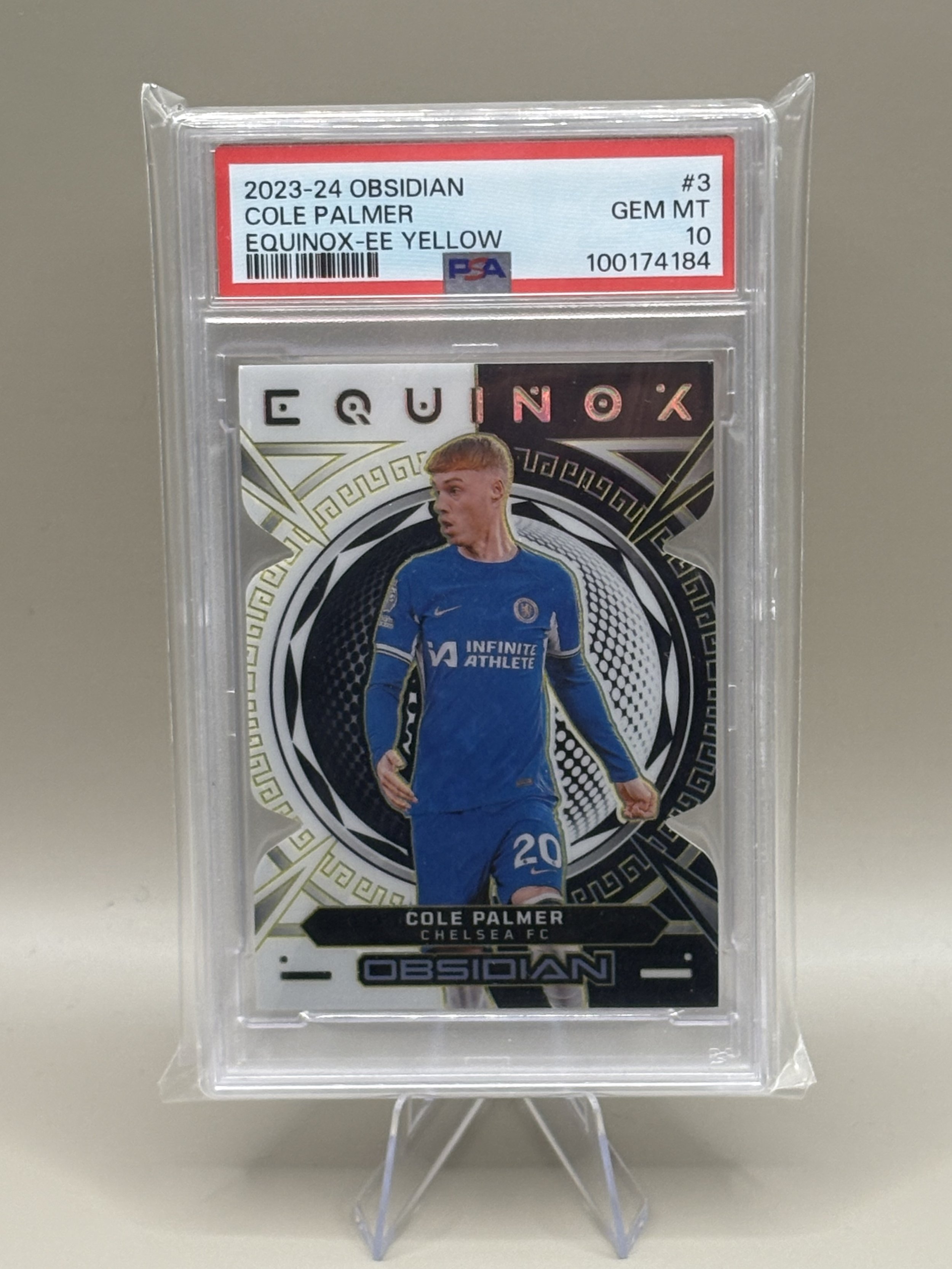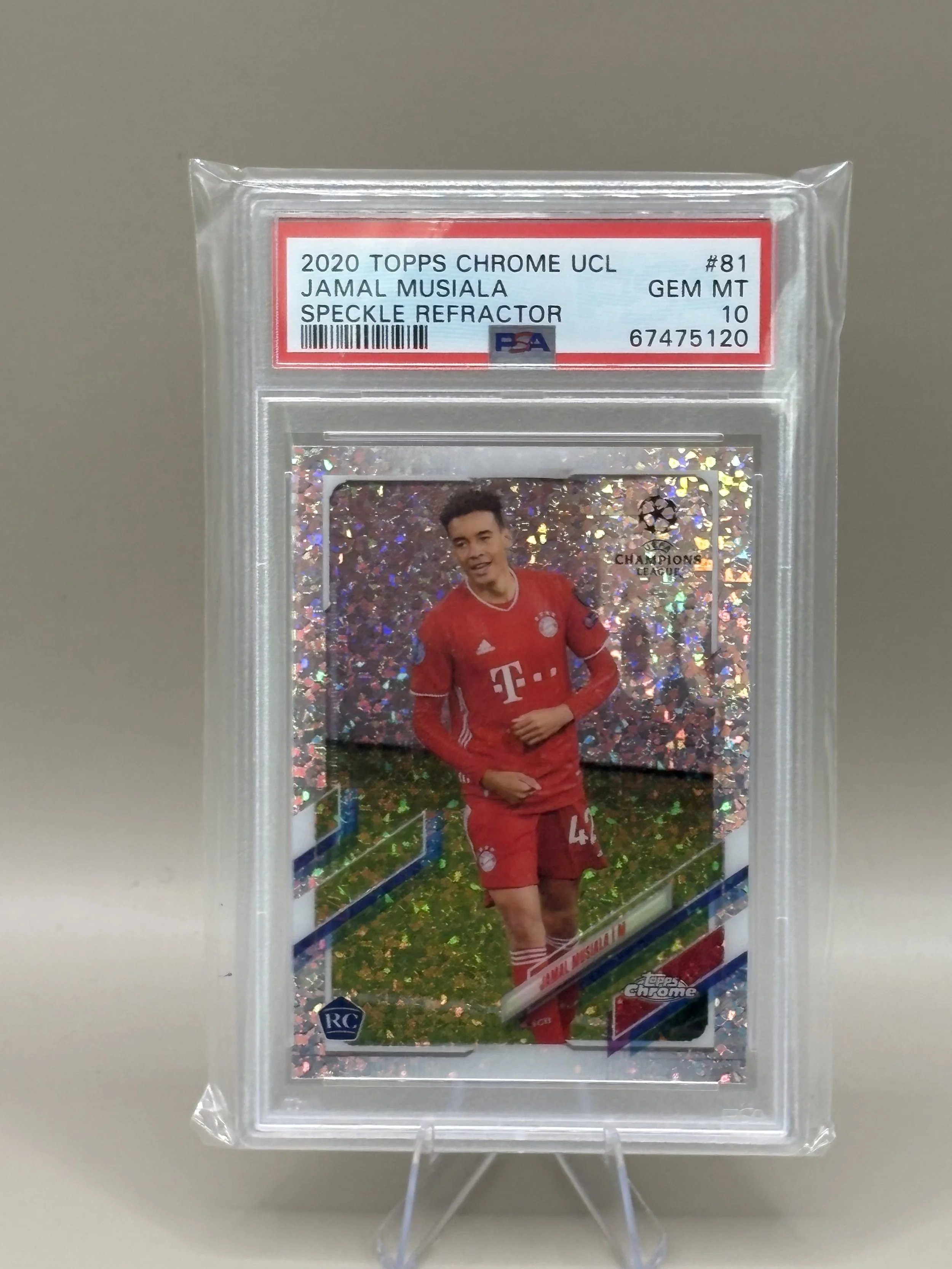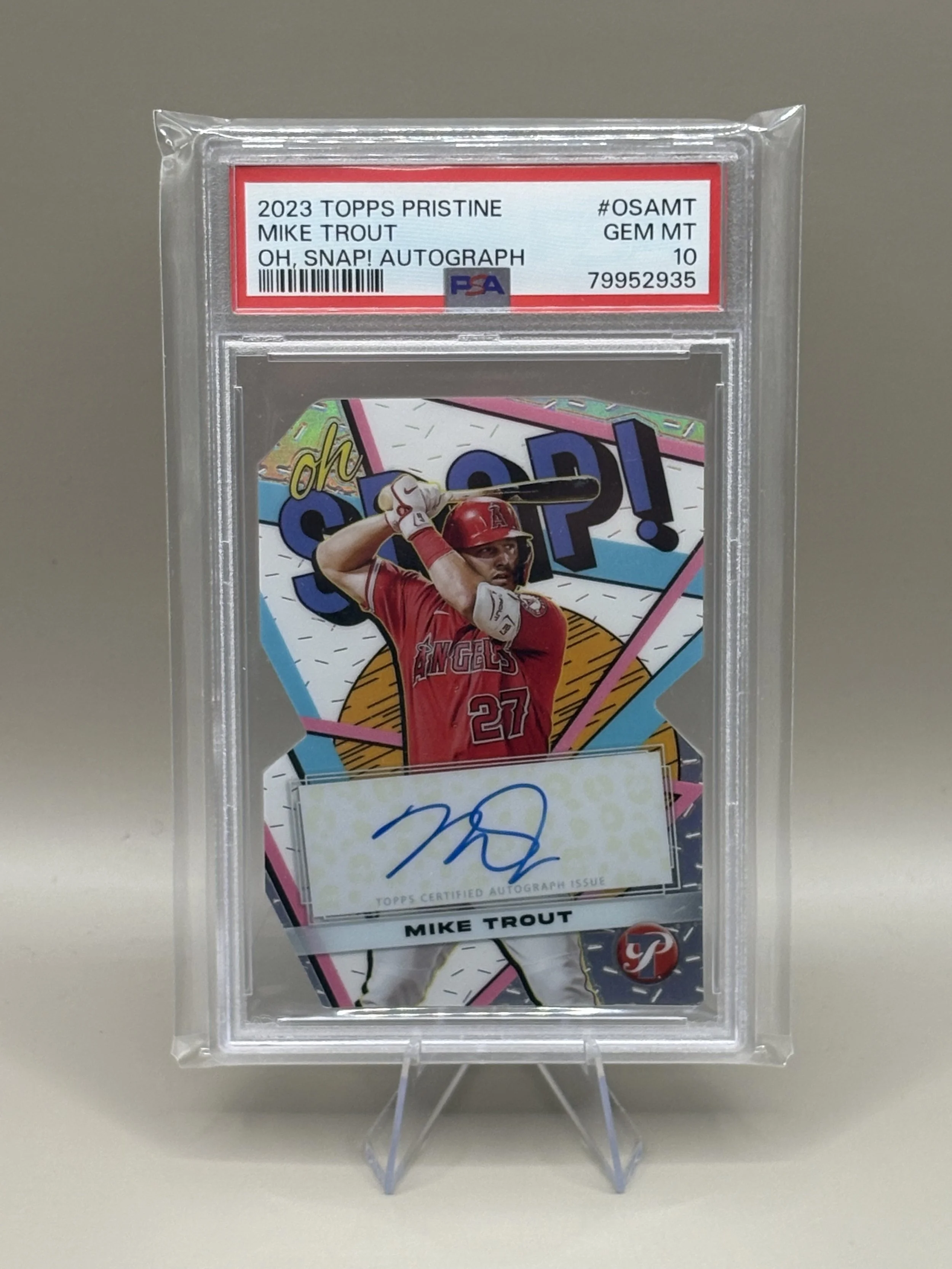 Shop Categories: All Soccer Baseball Cards Football Cards All | Soccer | Baseball Cards | Football Cards | 2022-23 Topps UEFA Club Competitions Carnival Erling Haaland UCC #99 PSA 10 Gem Mint (Festive Chrome Insert Parallel) $99.99 Add To Cart Added! 2024 Panini Donruss Optic Preview Bo Nix Rated Rookie Pink Prizm #369 PSA 10 Gem Mint $124.99 Add To Cart Added! 2024 Panini Donruss Optic Bo Nix Blue Scope Rated Rookie #209 PSA 10 Gem Mint $174.99 Add To Cart Added! 2020 Topps Chrome UCL Jamal Musiala Speckle Refractor Rookie #81 PSA 10 Gem Mint $150.00 Add To Cart Added! 2022-23 Stadium Club Chrome Martin Ødegaard Champions Contributions Orange /25 #19/25 PSA 10 Gem Mint $142.99 Add To Cart Added! 2023-24 Panini Obsidian Cole Palmer Equinox EE Yellow Die-Cut #3 #6/10 PSA 10 Gem Mint (Pop 1 – Likely Forever) $499.99 Add To Cart Added! 2019 Topps Chrome Vladimir Guerrero Jr. Prism Refractor Rookie #201 PSA 10 Gem Mint $174.99 Add To Cart Added! 2023 Topps Pristine Mike Trout Oh, Snap! On-Card Autograph #OSAMT PSA 10 Gem Mint $349.99 Add To Cart Added! 2017 Topps Chrome Aaron Judge #169 PSA 10 Gem Mint $300.00 Add To Cart Added! 2018 Topps Silver Pack 1983 Chrome Promo Ronald Acuña Jr. #101 PSA 10 Gem Mint $150.00 Add To Cart Added! 2018 Topps Chrome Update Ronald Acuña Jr. #HMT25 Refractor #2/250 PSA 10 Gem Mint $375.00 Add To Cart Added! 2024 Donruss Bo Nix PSA 10 Optic Preview- Red Pandora #369 Gem Mint $175.00 Add To Cart Added! 2024 Topps Finest Bo Nix RK Finest Auto-Oil Spill Ref PSA 10 GEM MT 10 $1,799.00 Add To Cart Added! 2024 Topps Finest Drake Maye Prodigies Autograph $450.00 Add To Cart Added! 2017 Topps Chrome Aaron Judge 1987 Topps #87T-8 PSA 10 Gem Mint $350.00 Add To Cart Added! 2018 Topps Chrome Shohei Ohtani 1983 Topps #83T-6 PSA 10 Gem Mint $799.00 Add To Cart Added! 2018 Bowman's Best Shohei Ohtani Power Producers PSA 10 #PPSO Gem Mint $350.00 Add To Cart Added! 2018 Bowman Shohei Ohtani PSA 10 #49 Gem Mint $299.00 Add To Cart Added!