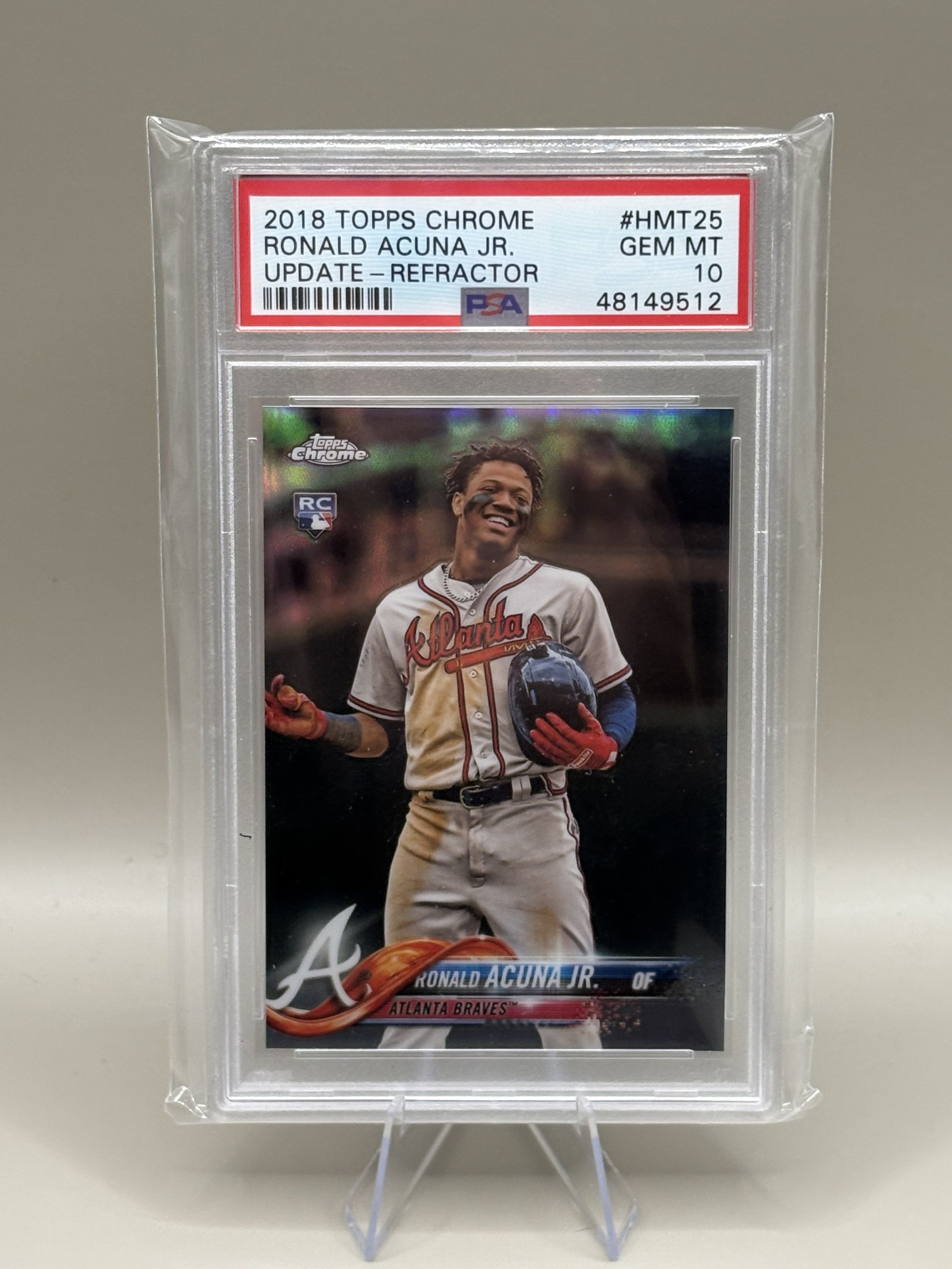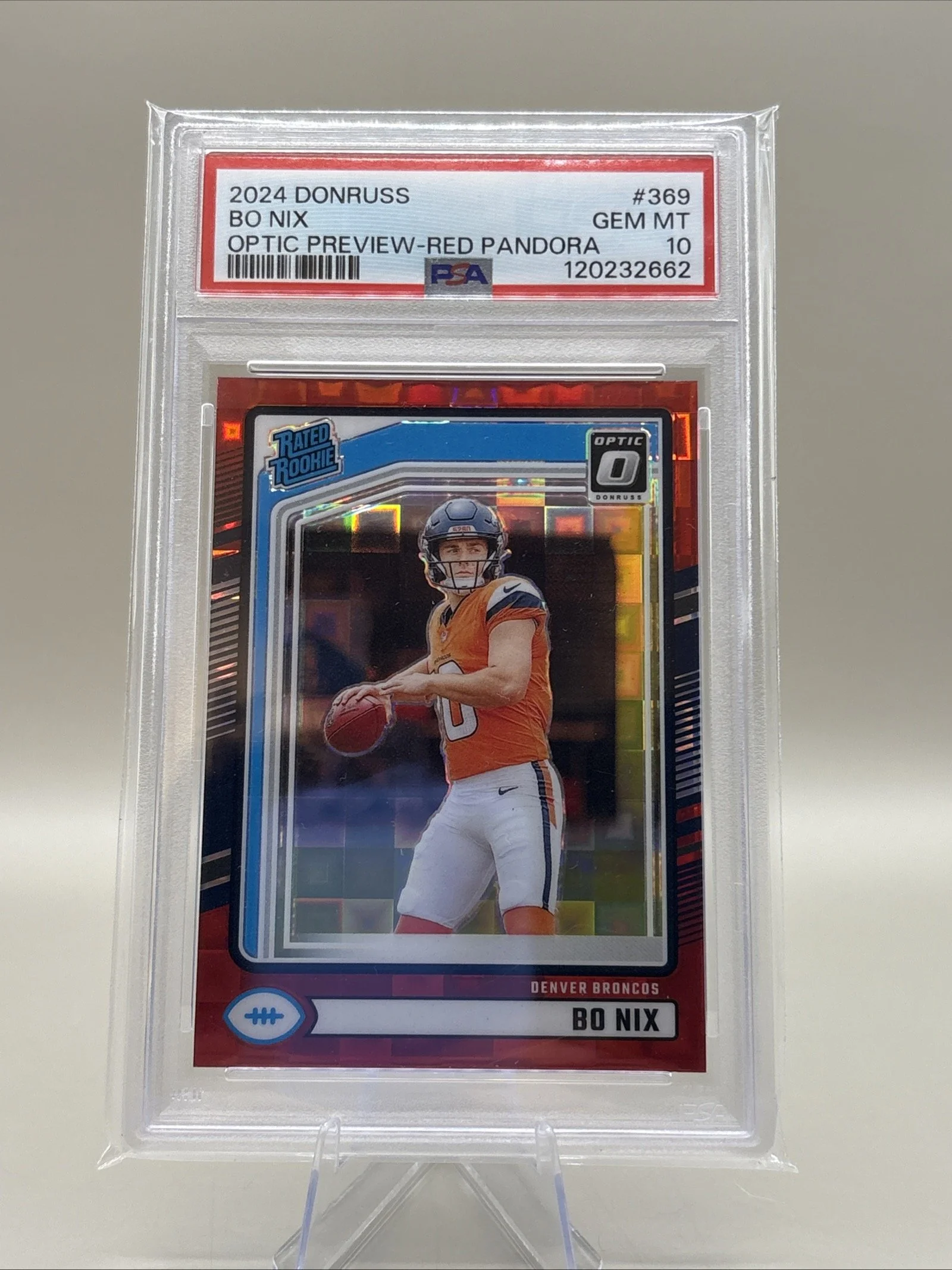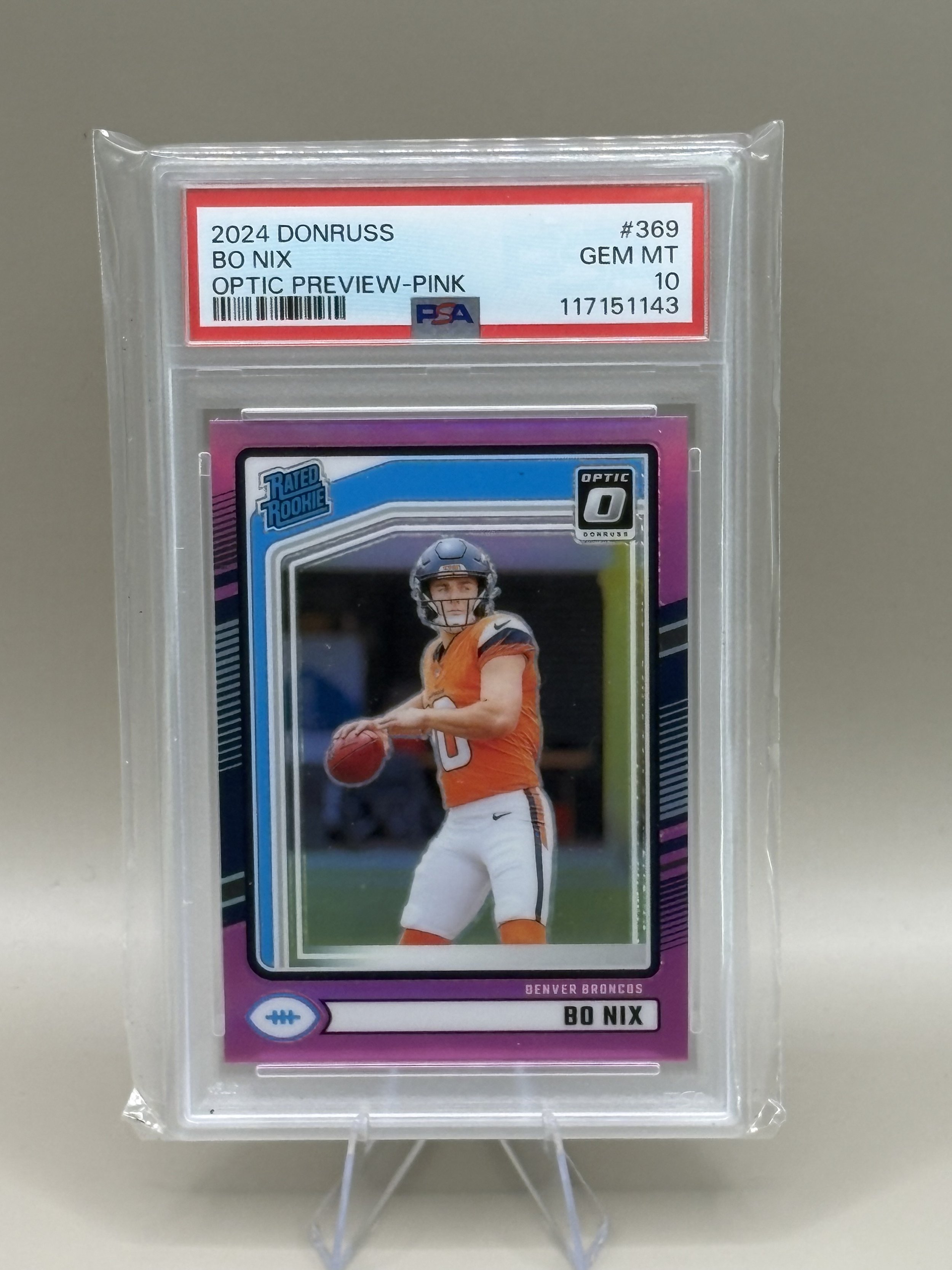 Shop Categories: All Soccer Baseball Cards Football Cards All | Soccer | Baseball Cards | Football Cards | 2022-23 Topps UEFA Club Competitions Carnival Erling Haaland UCC #99 PSA 10 Gem Mint (Festive Chrome Insert Parallel) $99.99 Add To Cart Added! 2024 Panini Donruss Optic Preview Bo Nix Rated Rookie Pink Prizm #369 PSA 10 Gem Mint $124.99 Add To Cart Added! 2024 Panini Donruss Optic Bo Nix Blue Scope Rated Rookie #209 PSA 10 Gem Mint $174.99 Add To Cart Added! 2020 Topps Chrome UCL Jamal Musiala Speckle Refractor Rookie #81 PSA 10 Gem Mint $150.00 Add To Cart Added! 2022-23 Stadium Club Chrome Martin Ødegaard Champions Contributions Orange /25 #19/25 PSA 10 Gem Mint $142.99 Add To Cart Added! 2023-24 Panini Obsidian Cole Palmer Equinox EE Yellow Die-Cut #3 #6/10 PSA 10 Gem Mint (Pop 1 – Likely Forever) $499.99 Add To Cart Added! 2019 Topps Chrome Vladimir Guerrero Jr. Prism Refractor Rookie #201 PSA 10 Gem Mint $174.99 Add To Cart Added! 2023 Topps Pristine Mike Trout Oh, Snap! On-Card Autograph #OSAMT PSA 10 Gem Mint $349.99 Add To Cart Added! 2017 Topps Chrome Aaron Judge #169 PSA 10 Gem Mint $300.00 Add To Cart Added! 2018 Topps Silver Pack 1983 Chrome Promo Ronald Acuña Jr. #101 PSA 10 Gem Mint $150.00 Add To Cart Added! 2018 Topps Chrome Update Ronald Acuña Jr. #HMT25 Refractor #2/250 PSA 10 Gem Mint $375.00 Add To Cart Added! 2024 Donruss Bo Nix PSA 10 Optic Preview- Red Pandora #369 Gem Mint $175.00 Add To Cart Added! 2024 Topps Finest Bo Nix RK Finest Auto-Oil Spill Ref PSA 10 GEM MT 10 $1,799.00 Add To Cart Added! 2024 Topps Finest Drake Maye Prodigies Autograph $450.00 Add To Cart Added! 2017 Topps Chrome Aaron Judge 1987 Topps #87T-8 PSA 10 Gem Mint $350.00 Add To Cart Added! 2018 Topps Chrome Shohei Ohtani 1983 Topps #83T-6 PSA 10 Gem Mint $799.00 Add To Cart Added! 2018 Bowman's Best Shohei Ohtani Power Producers PSA 10 #PPSO Gem Mint $350.00 Add To Cart Added! 2018 Bowman Shohei Ohtani PSA 10 #49 Gem Mint $299.00 Add To Cart Added!